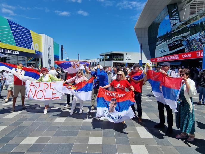 Srpski teniser u polufinalu Australijan opena igra protiv Aleksandera Zvereva, a pred sam početak meča u Melburn Parku, odnosno okolo Rod Lejver Arene mogao je da se primeti veliki broj srpskih zastava.