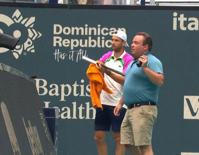 Posle drugog gema prvog seta, sudija Greg Alensvort je prekinuo meč. Amerikanac je ušao na teren i pozvao obezbeđenje kako bi izveli sa tribina jednog navijača.