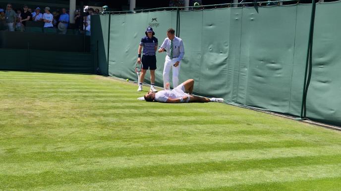 UF! DRAMATIČNE SCENE NA VIMBLDONU - MEĐEDOVIĆ DOŽIVEO NEZGODNU POVREDU! Srpski teniser u bolovima ležao na travi, svi se ZALEDILI OD STRAHA! FOTO