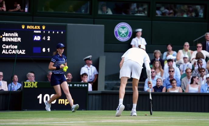 U trećem gemu drugog seta, baš u trenutku kada je Siner bacao lopticu uvis za servis, na teren je pao pampur.