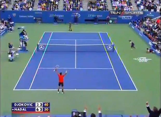NJUJORK - Fantastično finale US Opena između Novaka Đokovića i Rafaela Nadala obeležio je i spektakularan poen sredinom drugog seta.