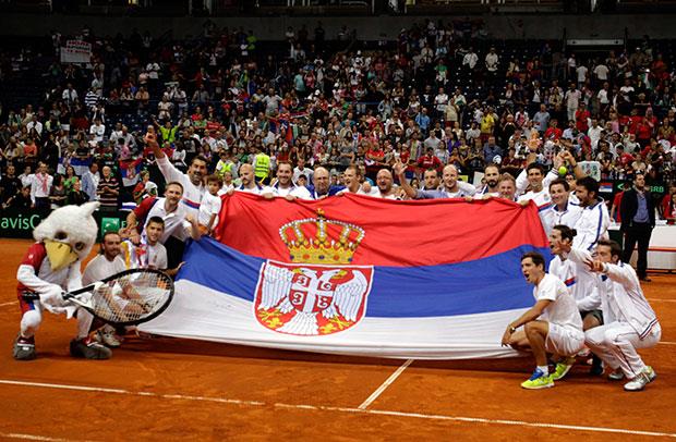 Reprezentativci Srbije su po tradiciji posle konferencije za novinare uz bubnjeve zapevali koračnicu "Marš na Drinu", koja ih je nosila i tokom polufinala sa Kanadom, ali i na svim ranijim pohodima u Dejvis kupu.