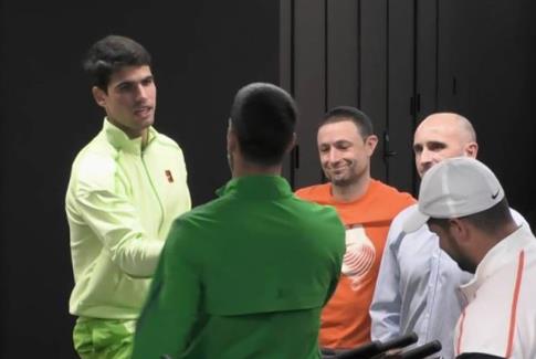 Dok je u teretani vozio bicikl, Đoković mu je prišao i srdačno čestitao na velikom podvigu. Nakon kratkog razgovora sa Špancem, pozdravio se i sa članovima njegovog tima i otišao da se sprema za izlazak na teren.