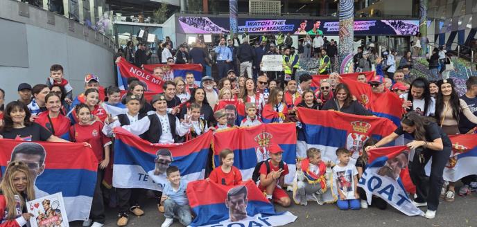 VIJORE SE SRPSKE ZASTAVE - EUFORIJA RASTE! Ludnica ispred Rod Lejver Arene - Novakovi navijači zapalili atmosferu pred veliko finale!