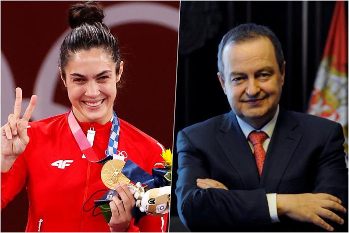 "Ponovo ste svoje ime i ime naše zemlje stavili na listu osvajača najvrednijih i najsjajnijih sportskih odličja. Još jednom Vam čestitam na briljantnom rezultatu i veličanstvenom uspehu kojim ste sebe uvrstili medju najveća imena olimpijskog sporta, kao i da se zahvalim na sreći i ponosu koji donosite našoj zemlji", naveo je Dačić u saopštenju.