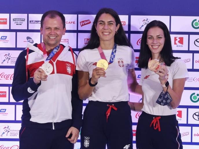 Osvajači olimpijskih medalja na Igrama u Tokiju tekvondistkinje Millica Mandić i Tijana Bogdanović i strelac Damir Mikec, doputovali su jutros u Beograd.