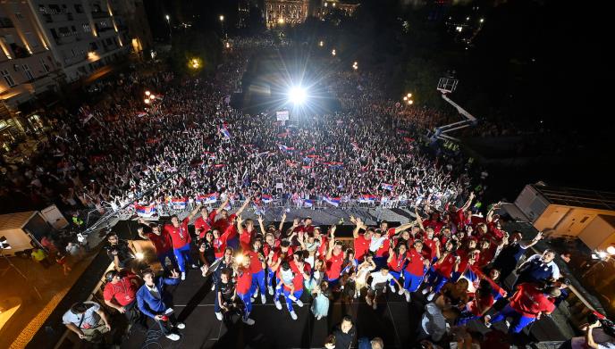 Poslednji koji su izašli na balkon su vaterpolisti, koji su odbranili zlato iz Rija.