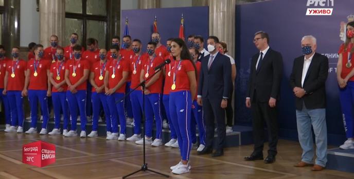 Predsednik Srbije Aleksandar Vučić primio je u Predsedništvu na Andrićevom vencu u Beogradu, članove olimpijskog tima Srbije, osvajače rekordnih devet medalja na Igrama u Tokiju.