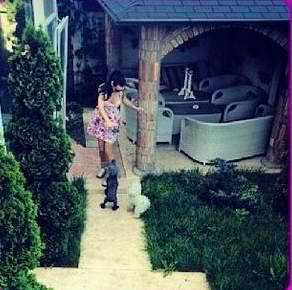 Kaća je iskoristila slobodan dan, između nastupa, za uživanje u svom dvorištu. Ona se opuštala kraj bazena uz limunadu, a zatim uživala i u igri sa svojim kućnim ljubimcem.