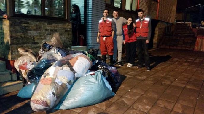 Sloba i ekipa prikupili su određenu sumu novca i mnogo garderobe koju su odneli u Crveni krst. Usput su svratili do jednog hipermarketa i kupili dosta namirnica, preko potrebne vode, slatkiša i hrane.