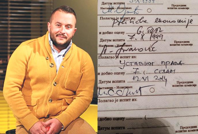 Poslednji ispit na Pravnom fakultetu dao je 1999. godine i to Političku ekonomiju
