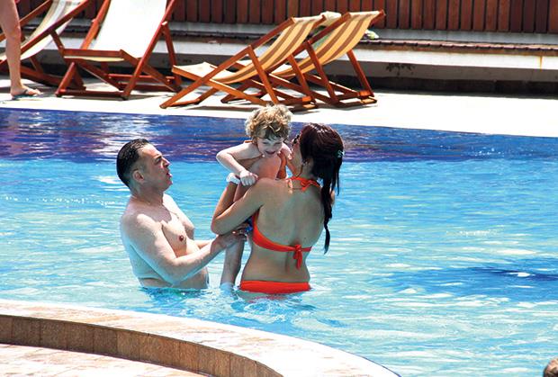 Četvorogodišnji dečak je hrabro skočio ocu u zagrljaj, a nekoliko minuta kasnije u bazen je uskočila i njegova žena Nina Radulović, voditeljka na TV Pink. Za razliku od para Lečić, porodica glumca Igora Đorđevića i njegove supruge i koleginice Zorane Bećić odabrala je da uživa na kamenoj plaži koja se nalazi nedaleko od hotela u kome su smešteni. Igor i Zorana se verovatno ne bi kvasili da na tome nije toliko insistirala ćerka Petra, koja skoro pola sata nije izlazila iz vode.