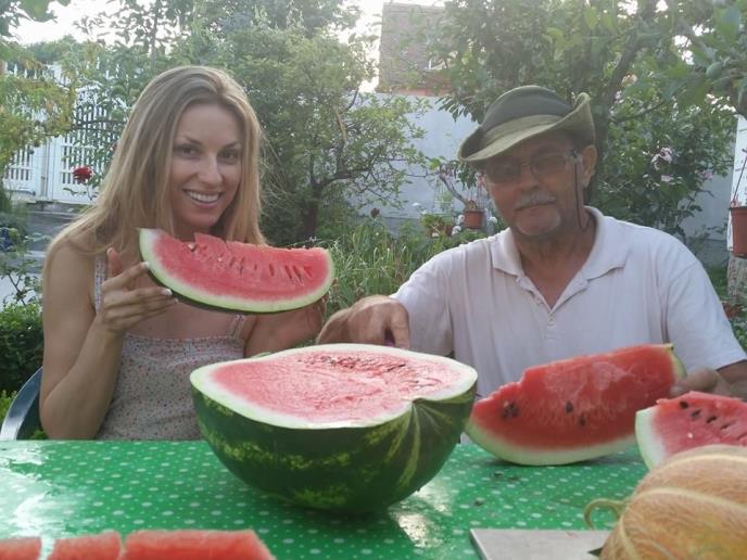 Rada je uz fotografije, na kojima je sa porodicom uživala u seoskoj idili i lubenici, napisala: Kod kuće je najlepše