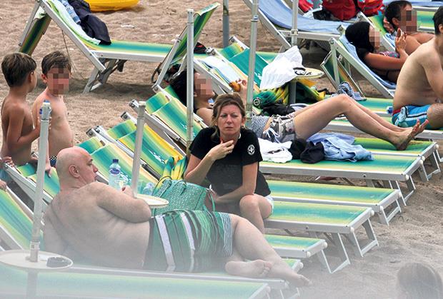 Miljkovićeva je bez šminke, s neobavezno podignutom kosom, provela popodnevne sate na obali pored mora trčkarajući za sinom sve vreme, dok se njen suprug Taške izležavao na ležaljci.