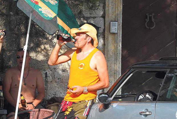 Paparaco Kurira uslikao je bivšeg člana grupe Montenigers kako s drugarima iz kraja pije pivo - verovali ili ne, oni su za manje od sat vremena popili tri gajbice.