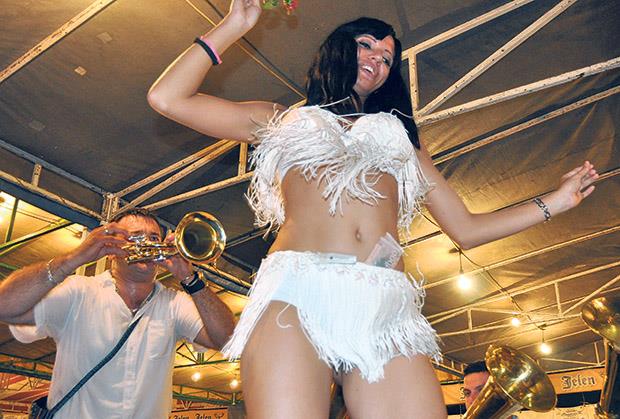U masi se mogla prepoznati i poneka poznata ličnost, kao što je bivši fudbaler Savo Milošević, koji je sve vreme proveo odmeravajući golišave plesačice. Ispred njega igraju tri oznojene igračice, trubači im stavili trube pod suknjice, pa duvaju li duvaju, kipi znoj, lete hiljadarke... Jedna se popela na sto, oni ispod guraju joj hiljadarke u oznojena nedra, drugi ispod.