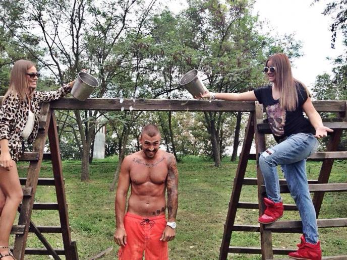 Njih dve su kible sa ledom dopunile vodom i iste izručile na glavu Ćertiću u jednom od beogradskih parkova, a kaskaderu nije smetalo loše vreme, ni niska temperatura.