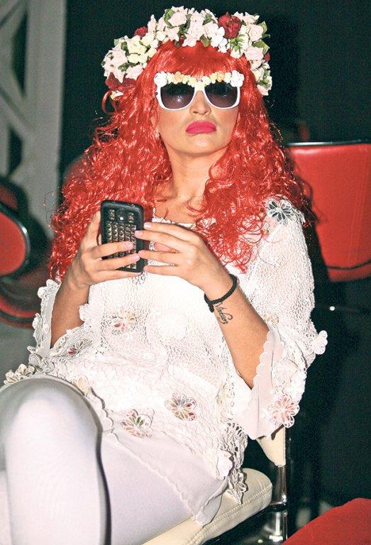 Andreana se toliko uživela u ulogu da masku nije skinula ni kada je sišla sa scene. Kao Brunclikova sedela je još neko vreme i telefonirala, dok je pućila usne.