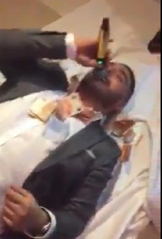 Kako se vidi na video, Darko leži na podu i peva dok su ga gosti sve vreme zasipali parama.