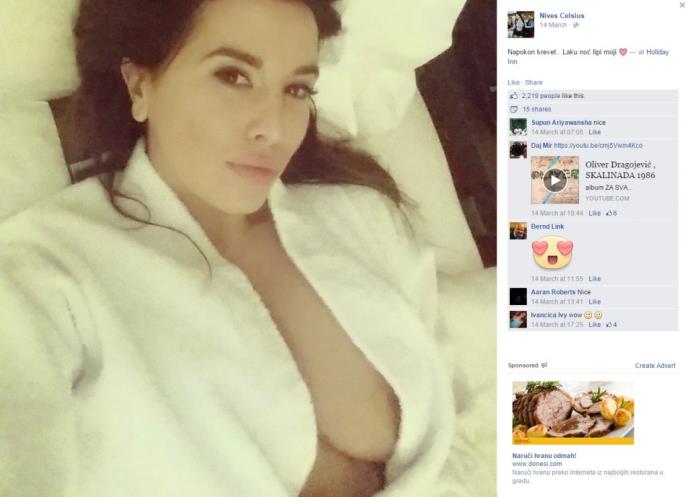 Pevačica i književnica je ovoga puta pokazala svoje bujne grudi, a tom prilikom je provirila i leva bradavica. Ona je fotografiju postavila na Fejsbuk profil pred spavanje i zagolicala maštu svojim pratiocima.
