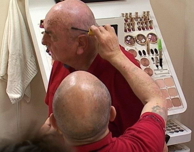 Njega je pred kamerama Hepi televizije mašinicom ošišao Vladimir Stanimirović, a zatim mu je Hasan Dudić farbao ćelu maskarom, kojom devojke mažu trepavice.