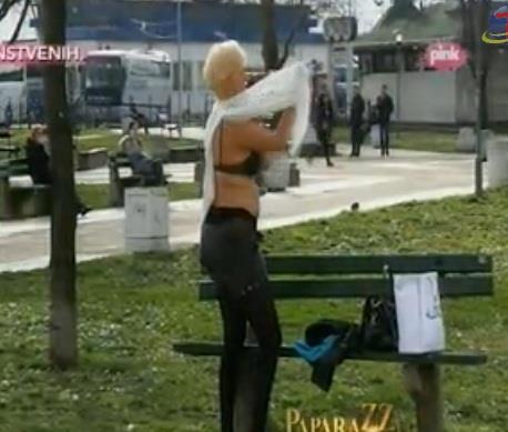 Naime, rediteljku je ekipa emisije "Paparaco lov" snimila kako se posle treninga presvlači usred parka. Ona je skinula majicu i ostala polugola. Jeleni ni malo nije smetalo to što je u brushalteru dok pored nje prolaze ljudi.