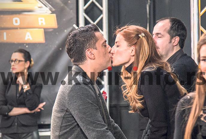 Naime, popularnog pevača i voditeljku paparaco Kurira je uslikao dok su razmenjivali nežnosti u pauzi snimanja talent šoua „X faktor“ u studiju Prve TV u Ugrinovcima. Iako je tu bilo mnogo ljudi, bračni par se poljubio, što inače ne čini. Ovo je prvi put da se fotka njihovog poljupca pojavljuje u javnosti.