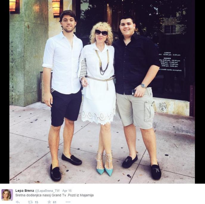 Fotografiju iz Majamija sa novim imidžom, u društvu sinova Stefana i Viktora, pevačica je objavila na "Tviteru" i tom prilikom čestitala prvi rođendan "Grand televiziji".