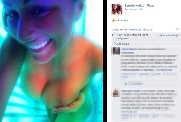 Neke od tih fotografija pojavile su se na Fejsbuk fan stranici bosanske starlete, na kojima se vidi kako Maca pozira u solarijumu, potpuno gola!