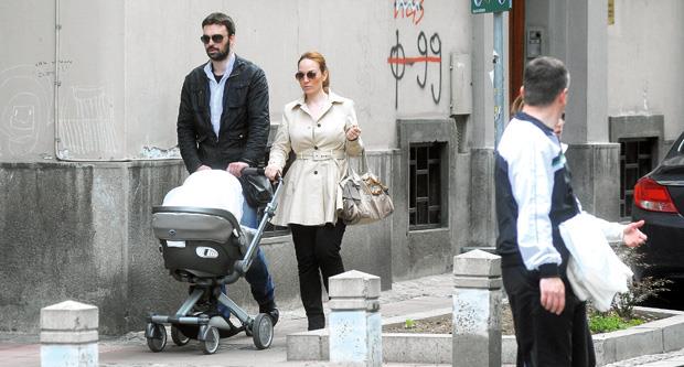 Jelena Tomašević i Ivan Bosiljčić iskoristili su sunčan dan da svoju tromesečnu ćerkicu Ninu izvedu u šetnju. Bračni par je s mezimicom prošetao centrom Beograda, a roditelji su sve vreme zajedno gurali kolica, što baš i nije uobičajeno.