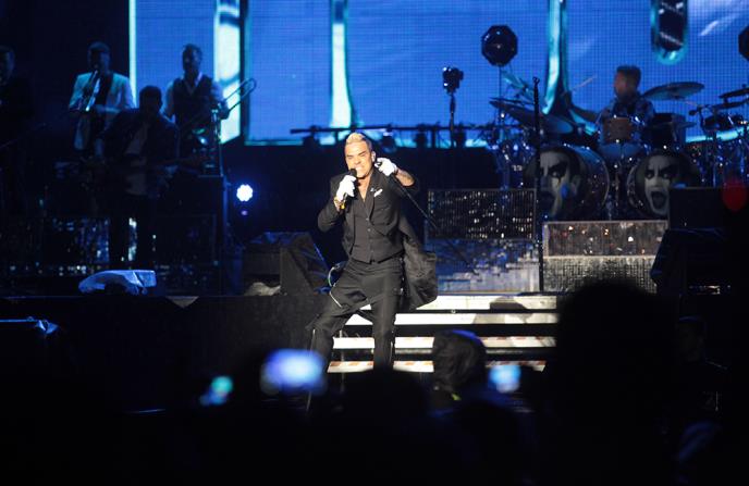 Robi Vilijams je sinoć Beograđanima priredio noć za pamćenje. Ispred prepunog Ušća nizao je svoje najveće hitove, a publika je, bez obzira na povremenukišu, skakala i oduševljeno pevala.