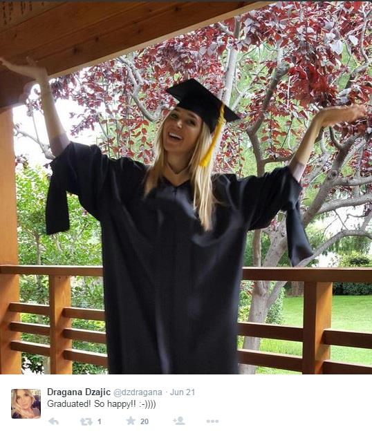 Ona se fotografijama sa svečanosti dodele diploma pohvalila na Tviteru na opšte oduševljenje njenih pratilaca. Svoju sreću Dragana je poželela da podeli sa svima, a na fotografijama je prosto sijala pokazujući da ima na šta i da bude ponosna.