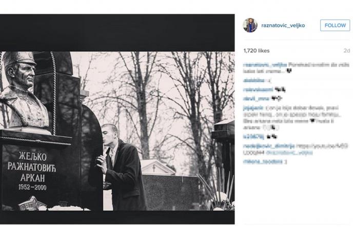 "Ponekad svratim da vidis kako leti vreme...", napisao je u opisu slike, na kojoj ljubi Arkanovu sliku na grobu. Veljko je imao samo četiri godine, a njegova sestra Anastasija dve kada je Željko ubijen 2000. godine.