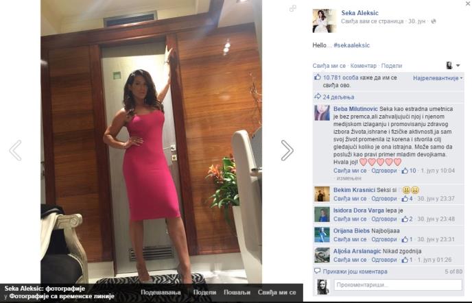 "Naravno da sam super obučena kad se pojavila Ilda Šaulić kao anđeo i donela mi njenu haljinu. Srećom, šminka nas isti čovek. Odlična je haljina, mnogo mi se dopada", rekla je Seka.