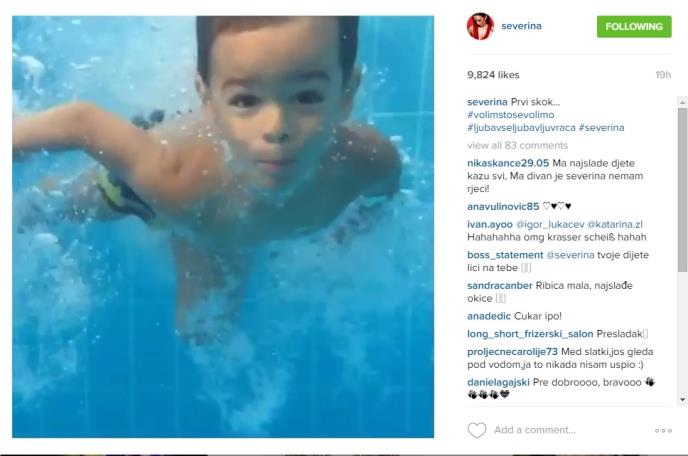 Naime, ona je danas postavila video snimak u kom je svog trogodišnjeg sina snimala podvodnom kamerom dok roni u bazenu.