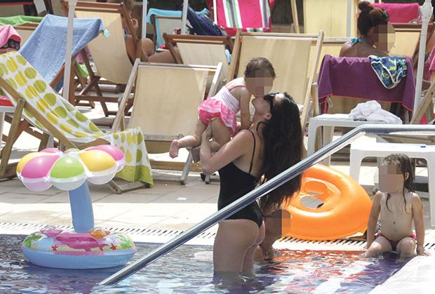 Ana Sević s jednogodišnjom ćerkicom Lorenom letuje u Petrovcu na Moru bez supruga Darka Lazića, a Kurirov paparaco ju je uslikao kako se sa svojom mezimicom brčka u bazenu.