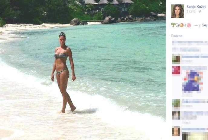 Kužetova je sa svojim fanovima na društvenoj mreži Fejsbuk podelila fotografiju sa plaže i pokazala svoje seksi telo. Na peščanoj plaži Sanja je zasenila sve prirodne lepote ostrva.