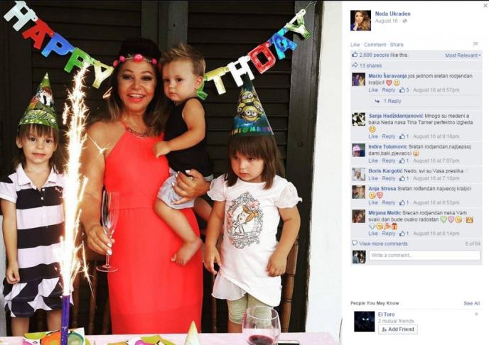 Jubilarni 65. rođendan pevačica Neda Ukraden proslavila je u Crnoj Gori, gde su joj najbliži organizovali slavlje.