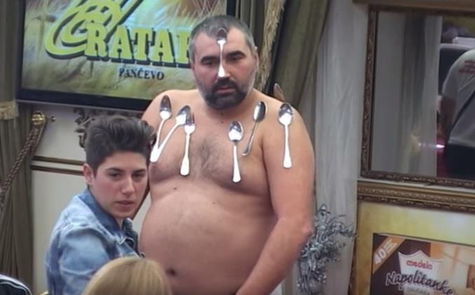 "Otkud ja znam, to se tako desi. Jednom kada sam gledao emisiju, to sam probao i ovako mi je stajala viljuška na kant", rekao je Miki, na šta je Era dobacio da batali metal, jer bi bilo bolje da se za njega lepe dobre ribe. Ostali su rekli kako je Miki pravi kuvar, jer se i posuđe lepi za njega. Đuričić je nastavio da pokazuje metale na svom telu, prilikom čega se kretao, dok je pribor za jelo ostao zalepljen na njegovom telo.