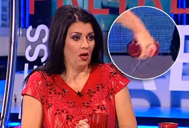 Nakon toga, odvažila se da tako iznervirana ustane, uzme čašu sa stola i polije voditelja vodom.