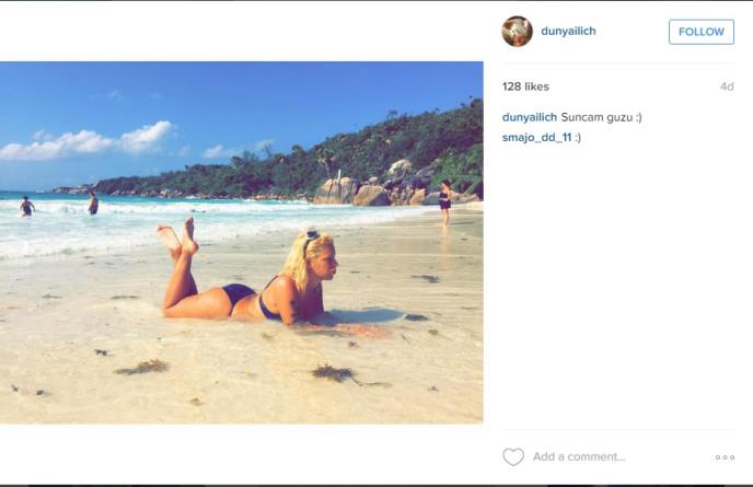 Tu priliku je iskoristila da napravi nekoliko fotografija u oskudnom crnom bikiniju, a njeni pratioci uživali su u Dunjinom telu.