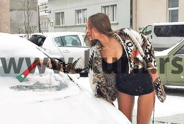 Sneg i led nisu sprečili oskudno odevenu starletu da očisti svoj četvorotočkaš da bi mogla da se odveze do centra grada. Kurirov paparaco uslikao je bivšu učesnicu rijalitija „Parovi“ kako se muči dok struže led, dok je u prvi plan isticala zadnjicu. Kada je posle skoro pola sata uspela da skine sneg i led s automobila, ušla je u auto i odvezla se.