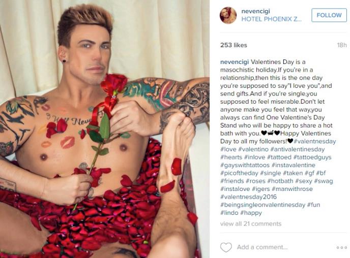 Neven Ciganović, hrvatski stilista i učesnik rijalitija Parovi, potpuno go je čestitao na Instagramu Dan zaljubljenih.
