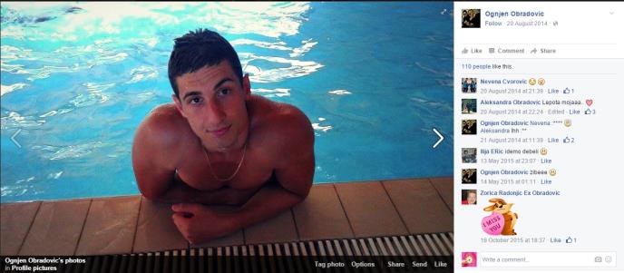 Ognjen Obradović studira na Fakultetu bezbednosti, '95. je godište, a kako se može videti po profilu na društvenoj mreži Fejsbuk, pravi je zavodnik.