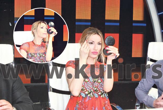 Pevačica je, kao i njen kolega, koristila svaku pauzu na snimanju emisije da dotera frizuru i šminku