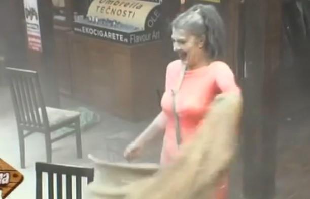 Dok je svađa bila u toku reper se prikarao pevačici s leđa i posuo brašno po njenoj glavi. Saška je cela bila bela, počela je da mlati brašnjavim stvarima, popepa se na sto i sve vreme se smejala kao luda.