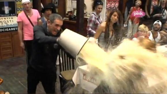 Njega je ponovo iznervirala ljuta suparnica Jelena Golubović koja mu je pomenula kćerku, pa je prišao i ispolivao je vodom, što je juče uradio više desetina puta.