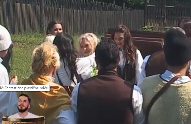 Marina Perazić, koja je bila švalja i sve vreme uz mladu, stala je pored mladih devojaka i skoro se počupala samo da bi osvojila bidermajer.