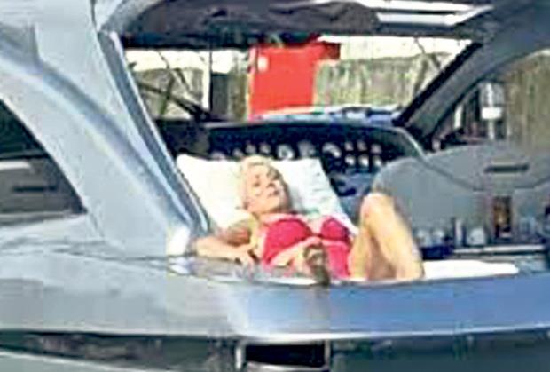 Parkiranjem na jeftinijem mestu Brena je lepo uštedela, pa je opušteno uživala u suncu. Izležavala se obučena u vatrenocrveni kupaći, dok joj je društvo pravio „kapetan lađe“, što je paparaco Kurira i zabeležio.