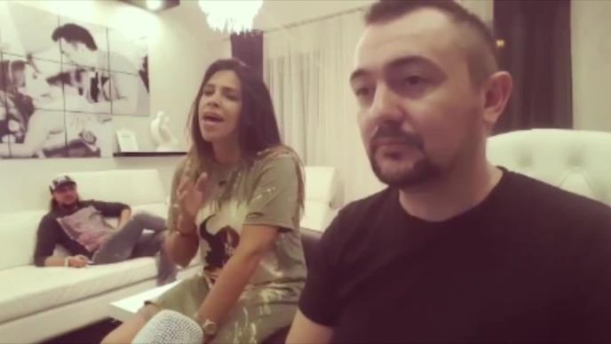 Dok Bane sedi za klavirom a Kaja peva, iza njih je Džunior Džek, pevačicin muž koji nadgleda sve.